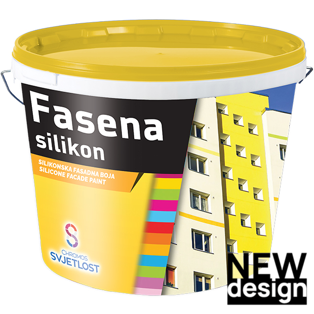 Visokokvalitetna fasadna boja izrađena od kvalitetnog silikonskog veziva i UV stabilnih pigmenata. FASENU SILIKON odlikuje mala sklonost prljanju te jako svojstvo vodoodbojnosti uz zadržavanje paropropusnosti. Odlične je prionjivosti, otpornosti na atmosferilije, alkalije, soli i industrijske plinove. Vodoodbojna je i svjetlootporna.
